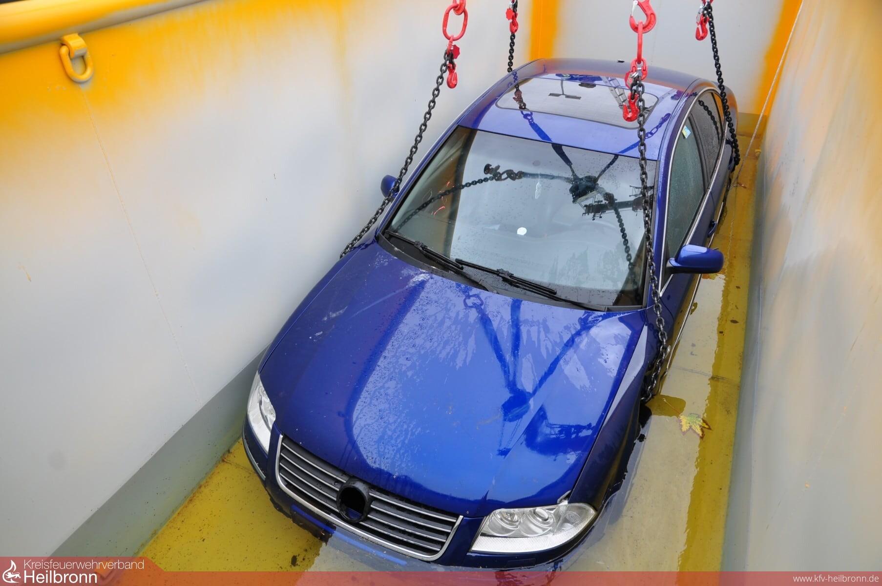 Mit der steigenden Tendenz zum Elektroauto steigt auch die Wahrscheinlichkeit von Bränden akkubetriebener Fahrzeuge. Um auf solche Ereignisse ebenfalls gut vorbereitet zu sein, wurde auch die Vorgehensweise bei brennenden Elektrofahrzeugen geübt. Hierbei kam eine mit Wasser gefüllte Mulde in die das angenommene Elektrofahrzeug mit dem Feuerwehrkran gehoben wurde zum Einsatz. Alles in allem konnten an diesem doch sehr interessant gestalteten Ausbildungstag viele Informationen und Erfahrungen unter den Teilnehmern ausgetauscht werden.