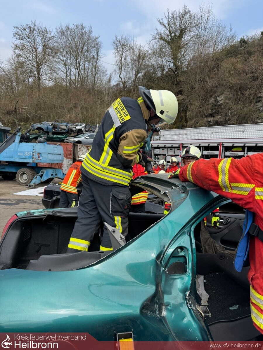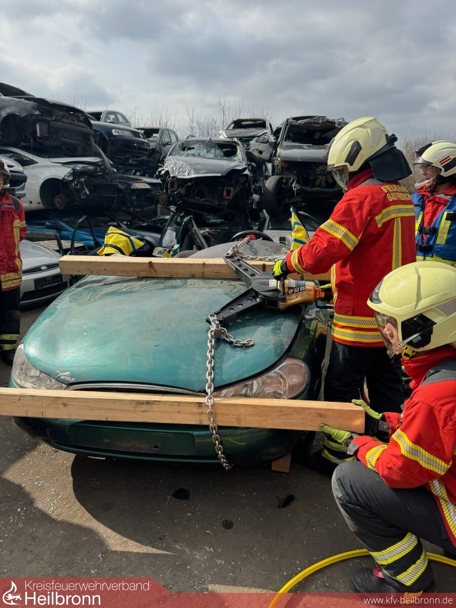 Auch die technische Hilfeleistung wurde intensiv geübt – hierfür stand ein weiterer Samstag zur Verfügung. Nach einer theoretischen Einführung in die benötigten Gerätschaften ging es auf einen Schrottplatz, wo das Schaffen von Zugangsöffnungen und die Rettung von Unfallopfern praxisnah trainiert wurden.