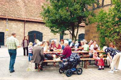 Seit 1989 gibt es das Keltergassenfest der Freiwilligen Feuerwehr bereits. Davor haben wir immer einen Fasching gemacht, doch irgendwann war die Resonanz nicht mehr so groß, erinnert sich Sailer an die Anfänge des Festes. Und hier ist es immer voll. Wo sonst die Feuerwehrautos parken, stehen am Sonntag Bierbänke und Biertische. Die Helme an den Wänden und die Schläuche erinnern jedoch an den Feuerwehralltag. Ganz zur Freude der kleinen Besucher. Die Feuerwehrautos parken rund um die Keltergasse.