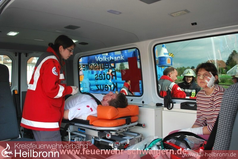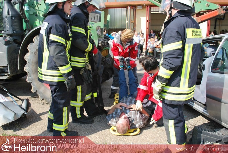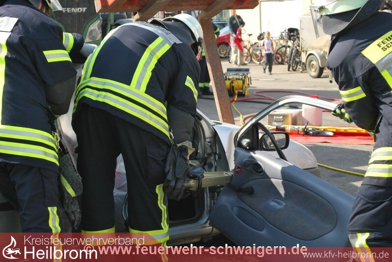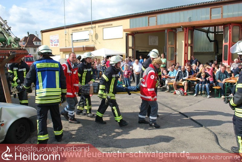 Nachwuchs Hinter dem Zelt hat die Jugendfeuerwehr ihr Angebot aufgebaut. Kinder löschen mit Feuereifer ein brennendes Haus, bringen Kegel und Dosen zu Fall. Hier steht der potentielle Nachwuchs der Schwaigerner Wehr, auch wenn es nicht mehr so einfach ist wie noch vor Jahren. „Wenn wir ein Drittel zu den Aktiven bekommen, sind wir zufrieden“, meint Schlund. 48 Aktive sind es derzeit, darunter drei Frauen. Das könnten von Schlund mehr werden. „Sie haben eine andere Sichtweise, gehen anders an Situationen ran“, stellt der Abteilungskommandant fest. Zu ihnen gehört Sandy Wittmann. Sie weiß selbst, wie schwer es ist, andere Frauen für den Feuerwehrdienst zu gewinnen. „Wenn man aus der Jugend kommt, ist es schon einfacher, als als Erwachsene einzusteigen“, meint sie. Vielleicht macht ja auch die technische Hilfeleistungsübung mit dem DRK Lust, beizutreten.
