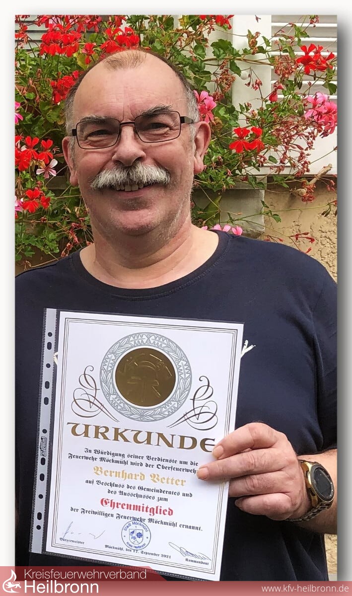 Dies war für die damalige Zeit sehr viel Arbeit, welche stets engagiert und vorbildlich von ihm ausgeführt wurde. Sein Lohn, Dank und Anerkennung erhielt 2011 sowie 2013 durch die Auszeichnungen unserer Homepage durch die Firma Dräger Safety, wobei er jeweils vier von fünf Helmen erhielt. Zudem wurde Bernhard Vetter für diesen Einsatz im letzten Jahr zum Ehrenmitglied der Feuerwehr Möckmühl ernannt. Am meisten freute er sich aber über den immer wieder großen und zahlreichen Zuspruch aus der Bevölkerung, welche ihm für diese Arbeit große Anerkennung und Respekt zollten.