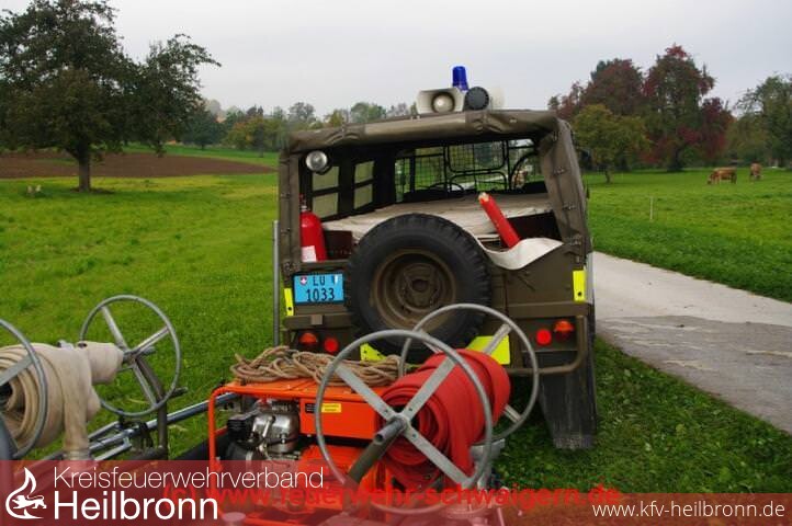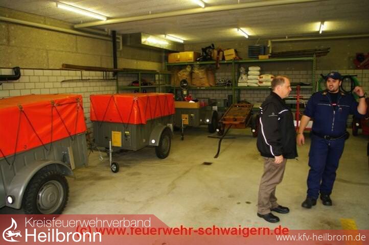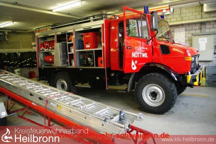 Nach Ende des Rundgangs erwartet uns bereits der Nottwiler Feuerwehrkommandant Thomas Muff um uns zur Feuerwehr im Gemeindezentrum zu bringen. In der Schweiz gibt es nach wie vor das System der Stützpunktfeuerwehren. Gleichzeitig schließen sich aber auch hier Nachbarwehren zur gegenseitigen Unterstützung zusammen. So bestehen solche Vereinbarungen zwischen der Gemeindefeuerwehr Nottwil und der SPZ Betriebsfeuerwehr sowie zwischen den Gemeinden Nottwil und Buttisholz. Im wesentlichen ist die Nottwiler Wehr für die Brandbekämpfung und für Unwettereinsätze zuständig. Öleinsätze und Technische Hilfeleistungen werden ausschließlich von der Stützpunktfeuerwehr Sursee erledigt. Entsprechend ist auch die Ausrüstung ausgelegt. Ein Tanklöschfahrzeug auf Unimog Fahrgestellt vom Schweizer Hersteller Brändle, das etwa unserem TLF 8 entspricht, sowie ein Pinzgauer aus Armeebeständen, der selbst zu einem Schlauchwagen mit 1.000 Meter B-Leitung umgebaut wurde. Daneben gibt es noch mehrere kleiner Anhänger, auf denen diverse Zusatzgeräte verlastet sind. Vom Seeufer in 500 m.ü.M geht es bis auf etwa 800 m.ü.M. Die Wasserversorgung mit Hydranten endet direkt an der Grenze der Wohnsiedlungen. Für alle weiteren auf der Markung liegenden Höfe und Gebäude gibt es Wasserzisternen. Diese sind so verteilt, dass jedes Gebäude innerhalb eines 1.000 Meter Radius um eine solche Zisterne liegt.
