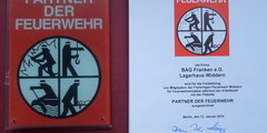 Beim Bürgerempfang am Sonntag, 12.01.2014 wurde in diesem Jahr erstmals die Auszeichnung „Partner der Feuerwehr“ vergeben.