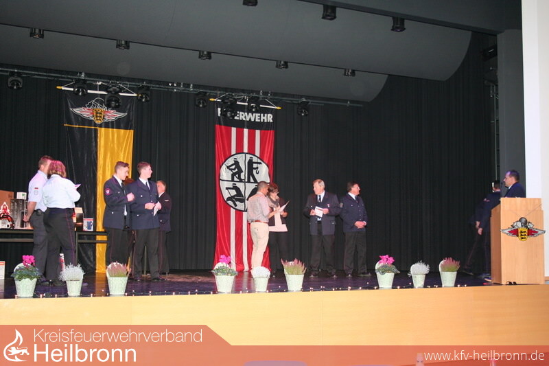 Bürgermeister Ulrich Ruoff freute sich zunächst besonders, dass er auch in diesem Jahr mit Reinhold Gall nicht nur den Vorsitzenden des Kreisfeuerwehrverbandes Heilbronn, sondern auch den Innenminister von Baden-Württemberg beim Kameradschaftsabend begrüßen kann. Reinhold Gall unterstreiche damit seine Verbundenheit mit den Feuerwehren im Landkreis, trotz seines übervollen Terminkalenders. Mit den Worten „Wir sind froh, dass wir sie haben“ brachte er den Dank der Gemeinde und aller Mitbürger für das ehrenamtliche Engagement für die Allgemeinheit und das Verantwortungsbewußtsein bei der Feuerwehr zum Ausdruck. Die einstimmige Verabschiedung des neuen Feuerwehrbedarfsplans durch den Gemeinderat bestätigt das gute Miteinander und unterstreicht den großen Stellenwert der örtlichen Feuerwehr. Die Zusammenlegung der Einsatzabteilungen aus Mangel an Personal in Degmarn ist zwar bedauerlich, aber unvermeidbar und stärkt die Einsatzbereitschaft.
