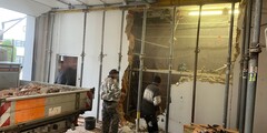 Zur Verbindung des Bestandsgebäudes mit dem Anbau wurden im November und Dezember 2025 mehrere Wanddurchbrüche realisiert. Aus Gründen der Statik wurden mehrere Stahlträger eingezogen.