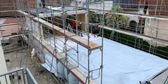 Im Anbau wird der Innenausbau weiter fortgesetzt. Dieser wird voraussichtlich bis Ende November größtenteils abgeschlossen sein. Im Zwischenbau folgen als nächstes Trockenbau-, Estrich- und Elektroarbeiten. Im Bestandsgebäude werden voraussichtlich noch in diesem Jahr die Durchbrüche stattfinden.