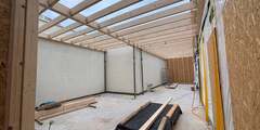 Anfang Oktober 2025 wurde mit der Errichtung des Zwischenbaus begonnen. Hier wurde zunächst ein Grundgerüst aus Holz gebaut, welches anschließend ausgekleidet wurde. Die Fertigstellung und Abdichtung des Dachs erfolgte am 30.10.2025.