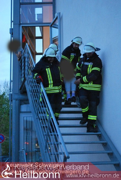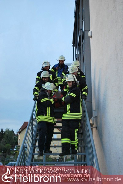 Die Abteilungen Schwaigern und Massenbach probten im ASB Seniorenheim Schwaigern die Evakuierung einer kompletten Etage. Ein Feuer machte es notwendig, das komplette Gebäude zu räumen. Bei der Übung beschränkte man sich dabei auf die Brandbekämpfung sowie die Evakuierung des 1. Stocks. Ein Teil der Bewohner erklärte sich bereit, an der Übung teilzunehmen und sich „retten“ zu lassen, der Rest wurde durch Statisten ersetzt. Übungsziel war es in erster Linie ein Gefühl dafür zu bekommen, wie lange die Räumung einer Etage dauern wird. Wie im Ernstfall auch, stand der Aufzug nicht zur Verfügung. Je nach Verfassung der einzelnen Patienten wurde diese ins Frei begleitet, bzw. im Rollstuhl oder Tragetuch über die Treppen getragen. Dabei wurde alle zur Verfügung stehenden Ausgänge getestet, d.h. neben dem Treppenhaus auch die Fluchtreppen an der Ost- bzw. Westseite des Gebäudes genutzt.