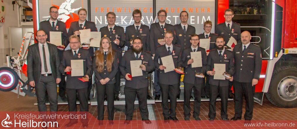 Über eine gut ausgebildete und stets motivierte Freiwillige Feuerwehr verfügt Neckarwestheim. So lautet das Fazit der Jahreshauptversammlung. Kommandant Marc Weinert und seine Stellvertreter Bastian Scheithauer und Florian Panzer gaben den zahlreich erschienenen Wehrleuten und Gästen einen Überblick der Aktivitäten im Jahr 2018. Auffallend hierbei war die Anzahl der geleisteten Einsätze: 34. Das bedeutete eine erhebliche Steigerung von knapp über 50 Prozent gegenüber dem Vorjahr. Von den gesamten Einsätzen entfielen 70 Prozent auf technische Hilfeleistungen und nur 15 Prozent waren echte Brandeinsätze.