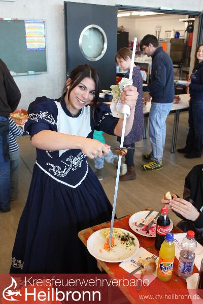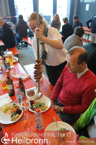 Nach rund drei Stunden Stadttour, wartete in der Feuerwehr bereits das nächste Highlight. Marlene Pfohe erfreute mit ihrem Team die Wanderer mit einem leckeren Essen „Brasil am Spieß“. Mit einem sechsgängigen Menü vom Grill, welches nach brasiliainischer Art direkt am Tisch, vom Spieß auf den Teller serviert wird, konnten sich alle wieder stärken und den Abend gemütlich ausklingen lassen.