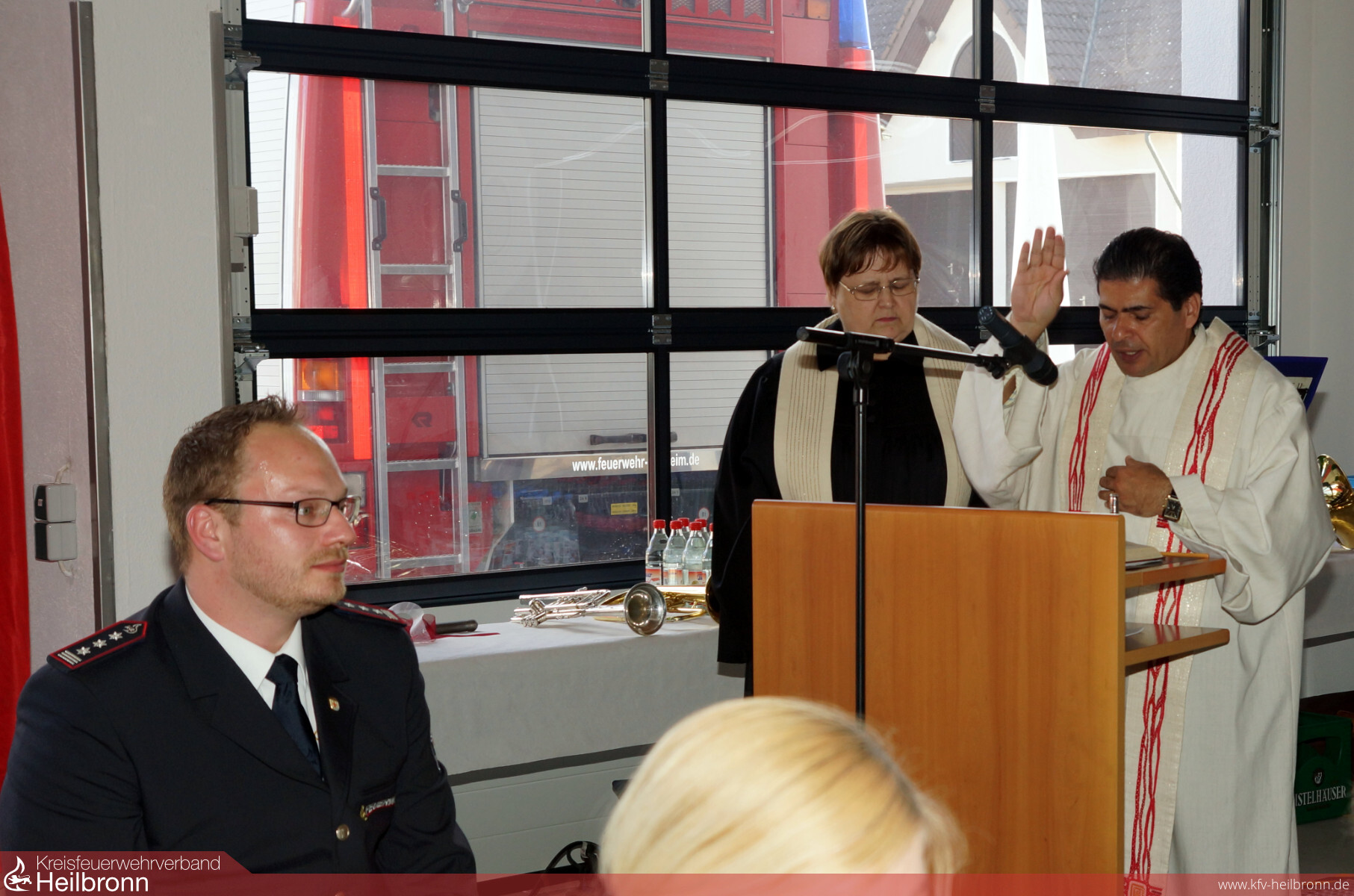 Pfarrer Johny Joseph und Pfarrerin Brigitte Strobel segneten das rechtzeitig fertiggestellte und festlich geschmückte Feuerwehrhaus mit feierlichen und nachhaltigen Worten.