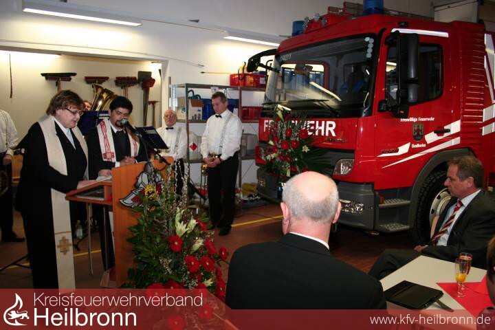 Die evangelische Pfarrerin Brigitte Strobel und der katholische Pfarrer Johny Joseph hatten die ehrenvolle Aufgabe, das neue Fahrzeug zu segnen. Mit der liebevollen Segnung und dem Gebet erbaten beide die schützende Hand des Hl. St. Florian für den Schutz der Feuerwehrleute und eine gesunde Rückkehr von allen Einsätzen.