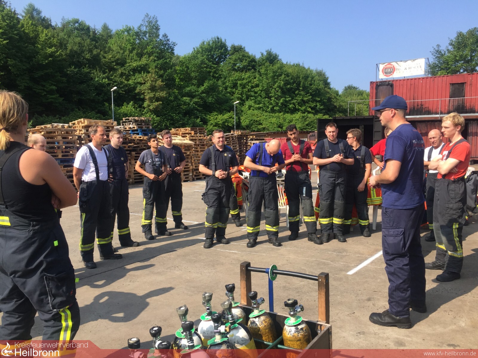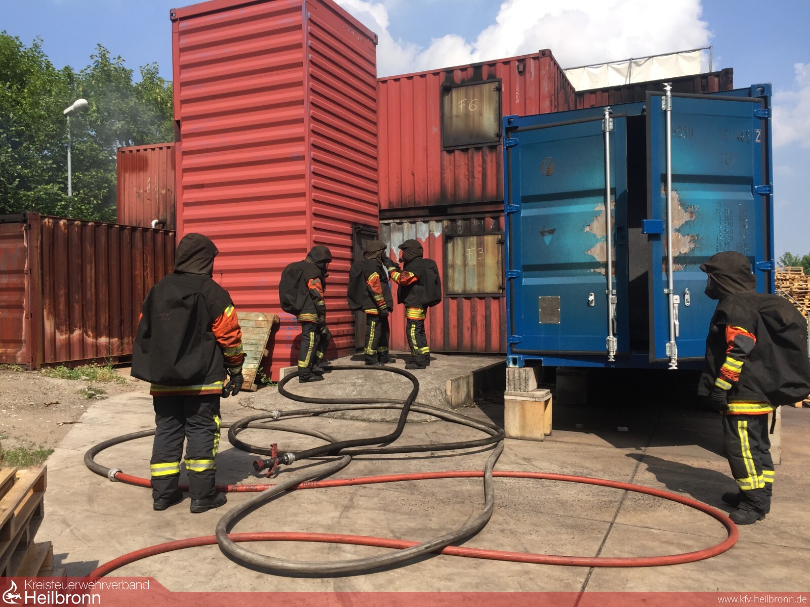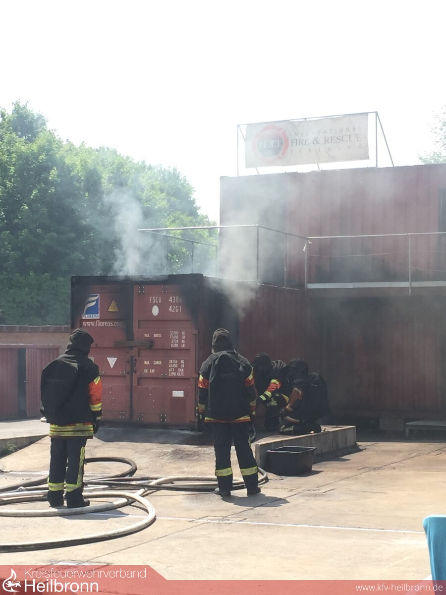 Am Sonntag, den 10.06.2018 fuhren bereits um 6:30 19 Kameraden und 6 Ausbilder der Feuerwehr Bad Rappenau und deren Abteilungen nach Külsheim, um bei International Fire & Rescue Training ihre Heißausbildung zu absolvieren. Die dortige Anlage besteht aus einem Hauptgebäude mit u.a. Lehrsälen, Aufenthaltsräumen, dem Schwarz-Weißbereich für Brandschutzkleidung, der Atemschutzwerkstatt und einer Küche. Die Brandübungsanlage steht auf einem ehemaligen Panzerwaschplatz. Die Anlage besteht aus mehreren Schiffscontainern, teils zweistöckig. Befeuert wird die Anlage mit Holz und bietet so realitätsnahe Bedingungen für die übenden Atemschutzträger.