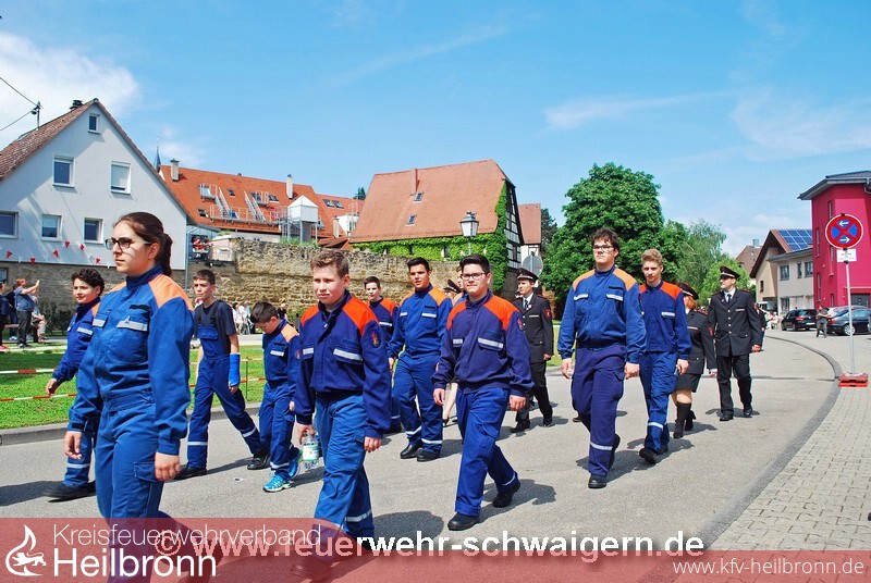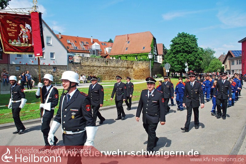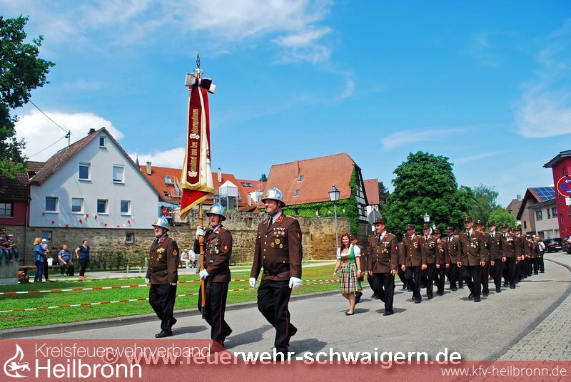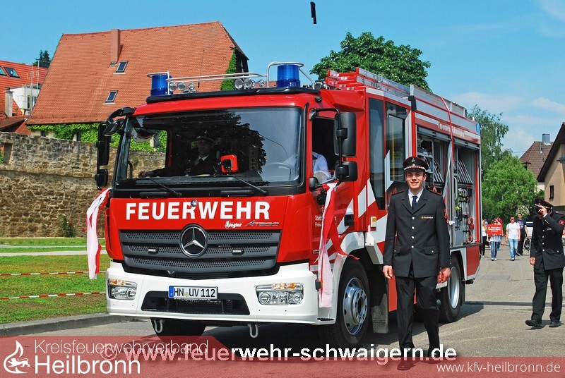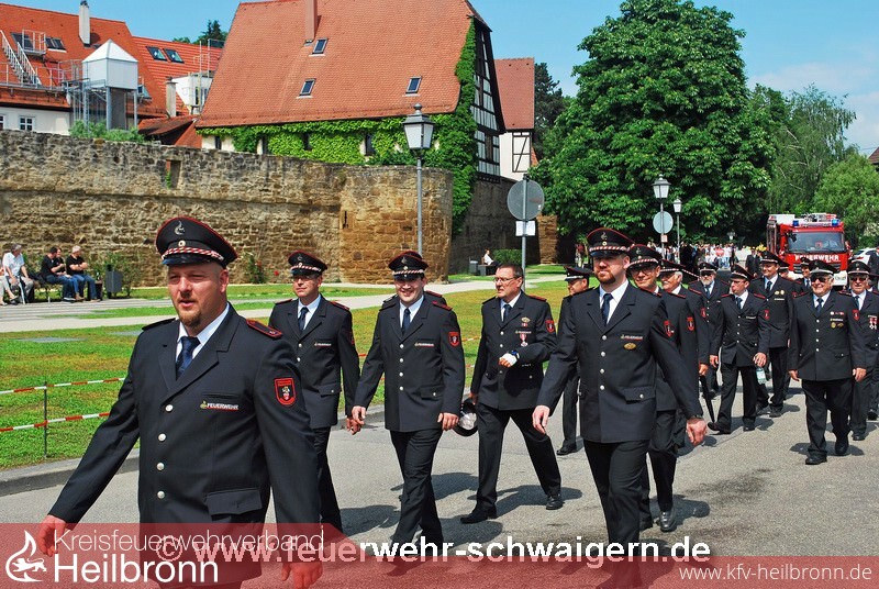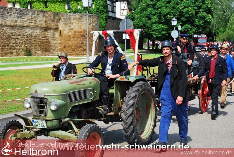 Der Festzug anlässlich der 1250-Jahr Feier der Stadt Schwaigern stand und dem Motto. einst und heute. Entsprechend präsentierte sich die Feuerwehr mit historischem und modernstem Gerät. So wurde unter anderem die Handdruckspritze Baujahr 1891 und das moderne Löschfahrzeug LF 10 Baujahr 2015 mitgeführt.