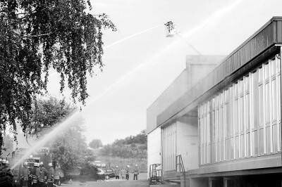 ?Wasserversorgung steht?, meldet der Eschenauer Abteilungskommandant Harald Frech, dessen Einheit als erste am angenommenen Brandort eintrifft. Seine Männer haben die 300 000 Liter fassenden Löschwassertanks angezapft, die im Meisenweg unter dem Straßenbelag versteckt sind. Immer mehr Vollzugsmeldungen treffen bei Kommandant Frisch am Einsatzleitfahrzeug ein.