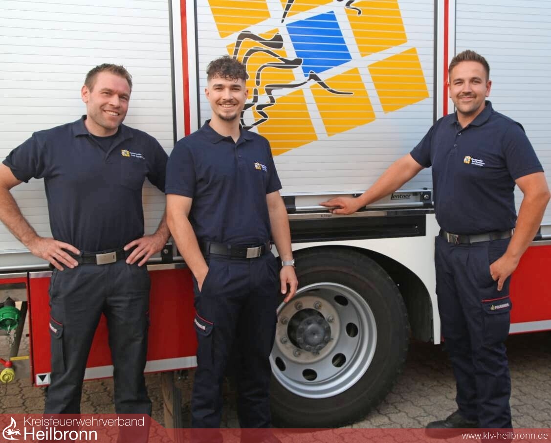 Feuerwehr-Kommandant Felix Mann (von links) ist froh, dass Felix Nägelein und Max Elser die Abteilung Heinsheim führen.