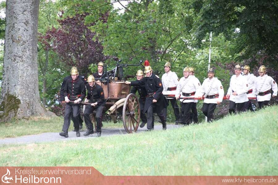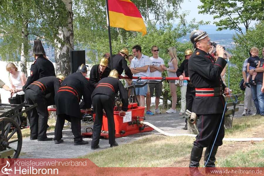 Zu einer historischen Übung der etwas besonderen Art kam es am 06.07.2014 anlässlich des 75 jährigen Jubiläums der Kameraden der Feuerwehr Weiler, welches unterhalb der Burg Steinsberg gefeiert wurde.