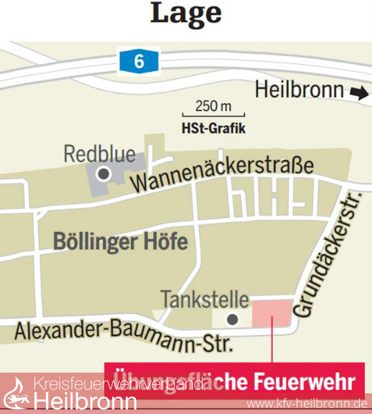 Die Feuerwehr Heilbronn bekommt auf den Böllinger Höfen, an der Ecke Alexander-Baumann-Straße/Grundäckerstraße, ein neues Übungsgelände. Die Einweihung soll im Frühjahr 2017 sein, die Kosten liegen bei 390.000 Euro.