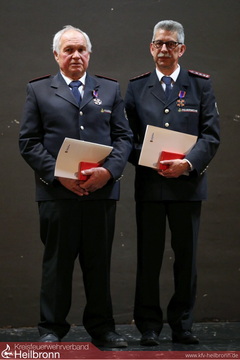 Eine Auszeichnung für besondere Leistungen im Feuerwehrwesen erhielten in Form des Feuerwehr-Ehrenkreuzes in Bronze vom Deutschen Feuerwehrverband Joachim Bauer und Fritz Wormser. (Bild 3)
