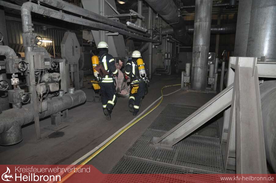 Bei einer groß angelegten Übung im Heilbronner EnBW-Kohlekraftwerk probte die Feuerwehr Heilbronn am Dienstagabend den Ernstfall.