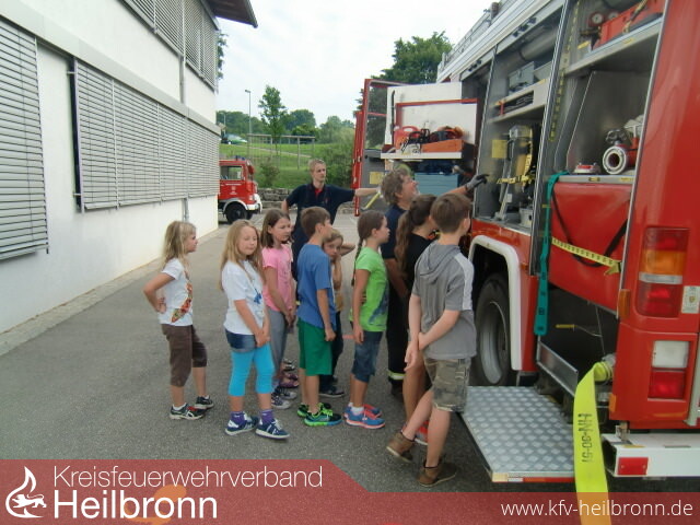 Die Lehrkräfte teilten die Schüler der Klassenstufen eins bis vier in gleichgroße Gruppen auf, die dann nacheinander die unterschiedlichen Stationen der Feuerwehr durchliefen.