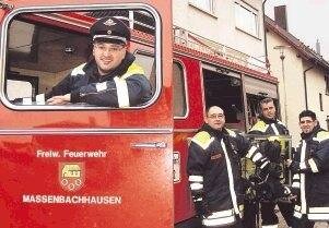Bild: Die Massenbachhausener Feuerwehr mit Kommandant Matthias Schüssler (links) ist froh: Bald wird das neue Löschfahrzeug ausgeliefert.Foto: Gabi Muth