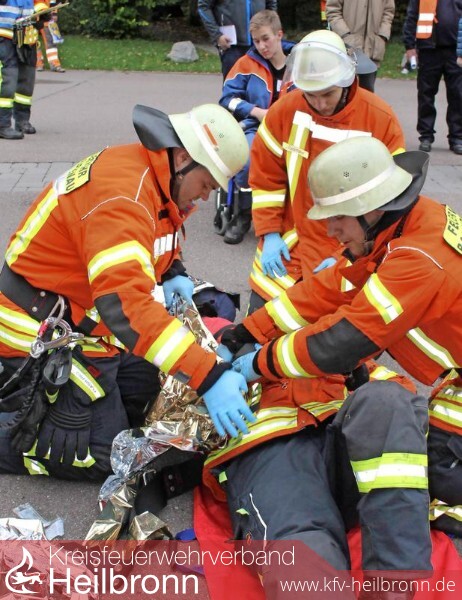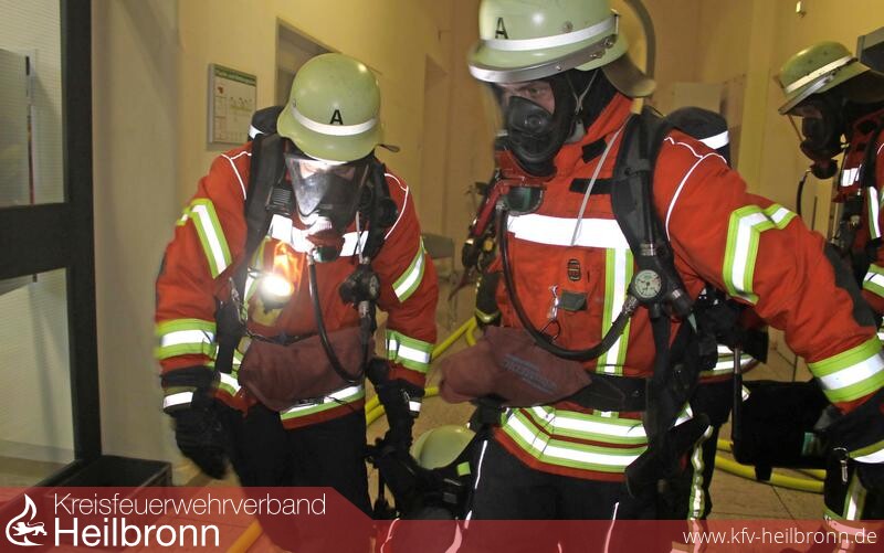 Bei fast null Sicht kämpfen sich die Feuerwehrleute zu den Verletzten durch und bringen sie in Sicherheit. Ein Knochenjob, wiegt doch allein ihre lebenswichtige Spezialausrüstung 20 bis 25 Kilogramm. „Das ist schon kräftezehrend“, weiß der Übungsleiter. Und wenn so ein Dummy geschleppt werden muss, bringt der nochmals 80 bis 90 Kilogramm auf die Waage.