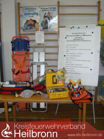 Fachliche Beratung erhielt die Feuerwehr vom ASB Heilbronn-Franken. Der AED wurde von der Firma Laerdal bezogen. Es handelt sich um einen FR2+ mit Überwachungsfunktion und Transportkoffer im Wert von ca. 3000.- €.