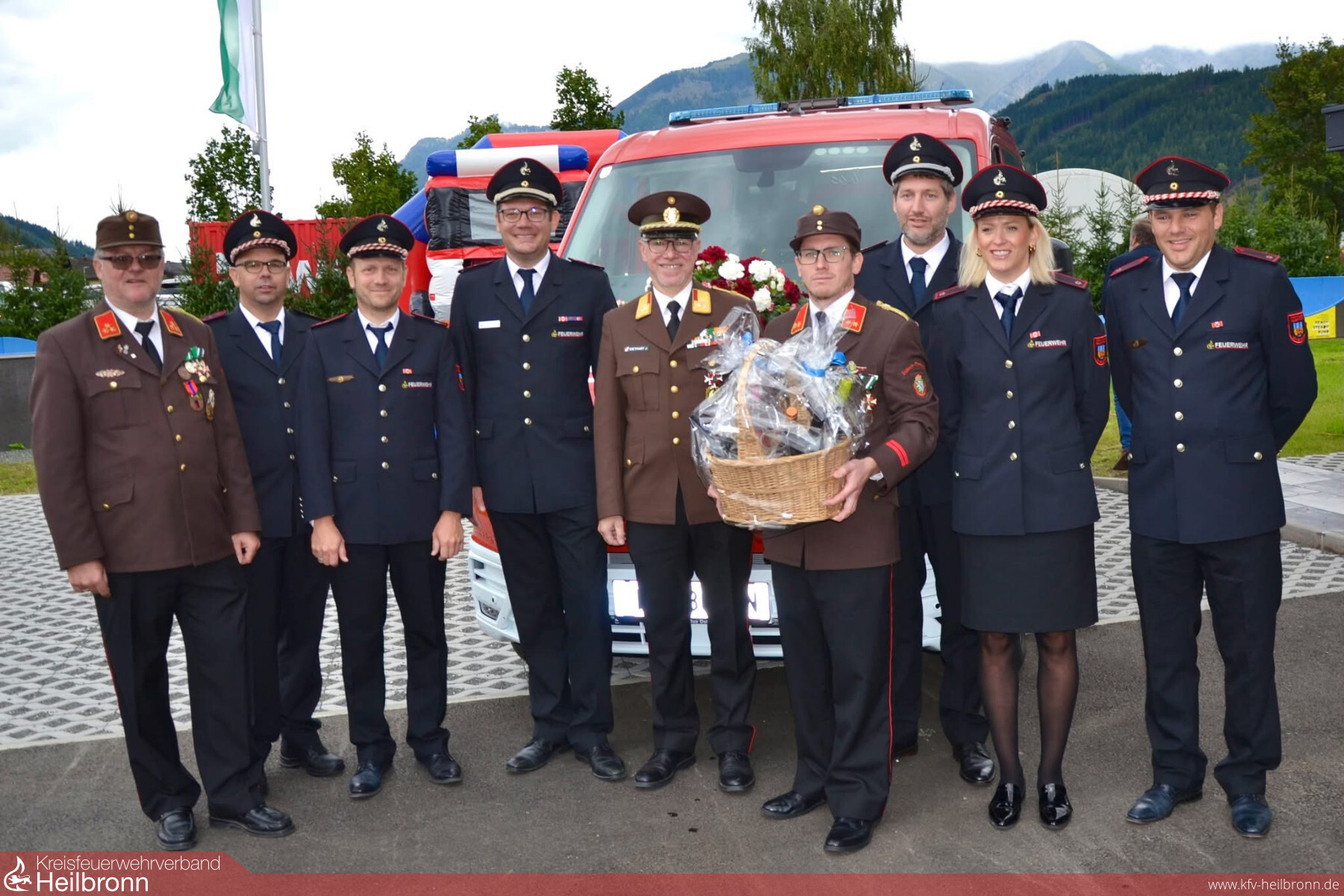 Feuerwehr Löwenstein bei Rüsthaus & Fahrzeugsegnung in der Partnergemeinde Traboch in Österreich zu Gast