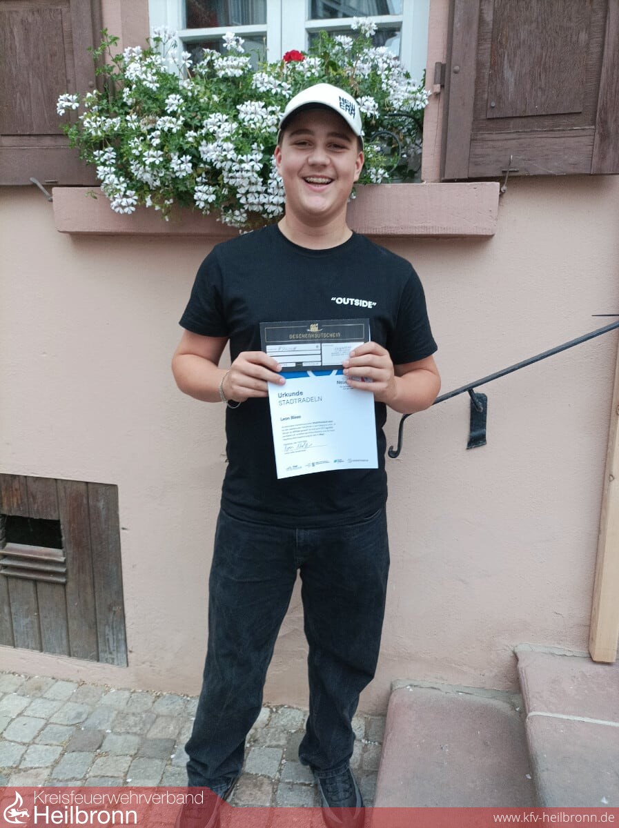 Doch damit nicht genug: Ein ganz besonderer Erfolg leuchtet aus der Jugendfeuerwehr. Leon Blees aus der Jugendabteilung übertraf alle Erwartungen und fuhr sich an die Spitze der U18-Wertung. Mit unglaublichen 470 Kilometern in nur drei Wochen – vom 19. Juni bis 9. Juli – ließ er alle anderen jungen Teilnehmerinnen und Teilnehmer hinter sich.