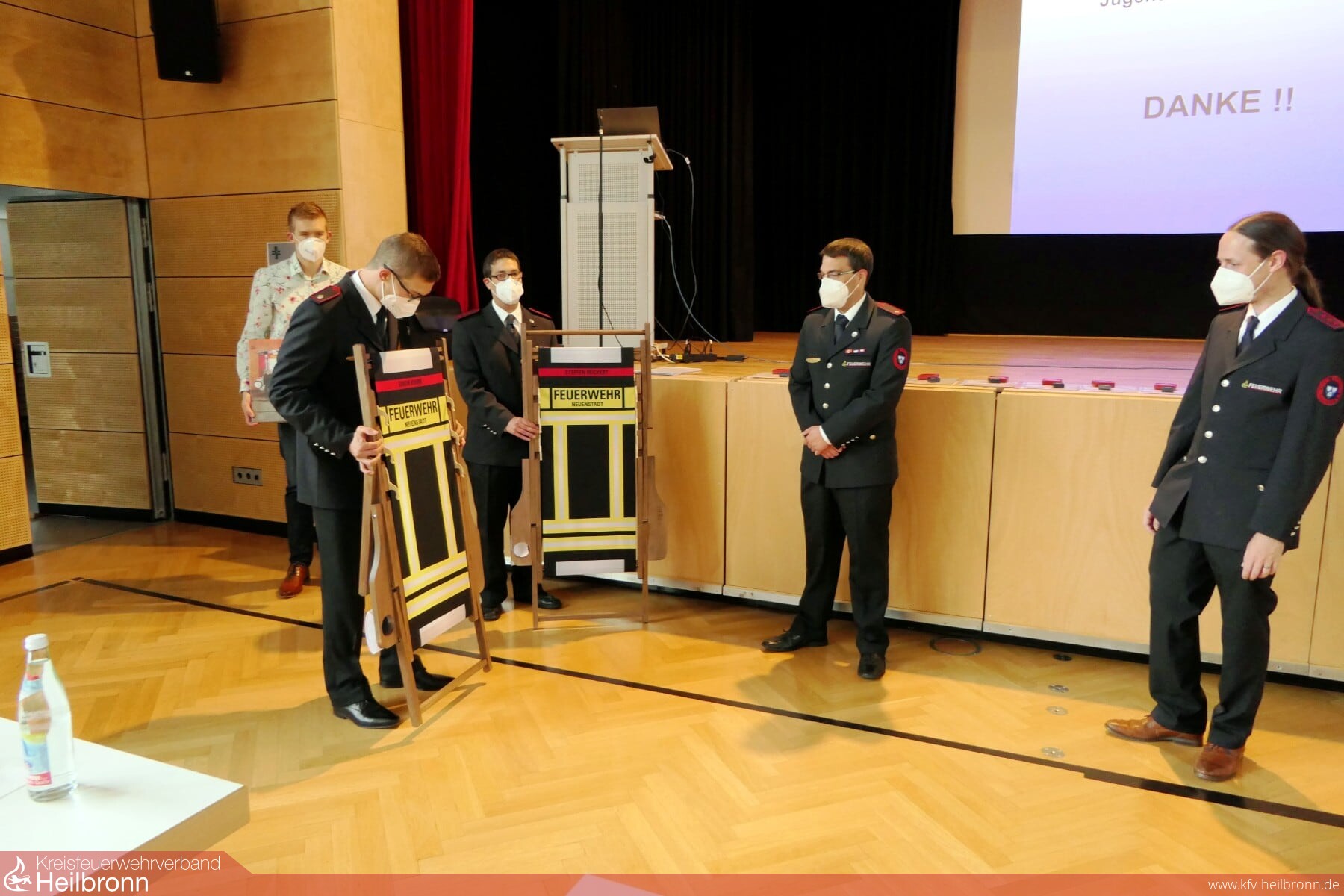 Er bedankte sich bei seinen Stellvertretern, den Abteilungskommandanten, den Leitern der Altersabteilungen und der Jugendfeuerwehr. Der Dank ging auch an die Nachbarwehren, DRK und THW für das gute Miteinander und allen Kamerad*innen für die gute Arbeit trotz großen Kontakteinschränkungen im abgelaufenen Jahr.