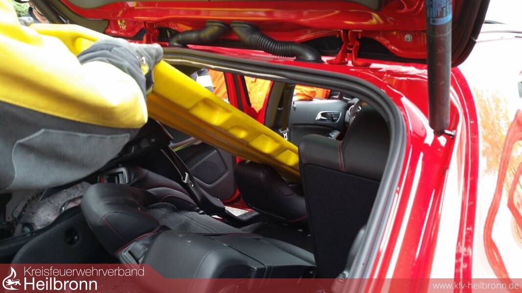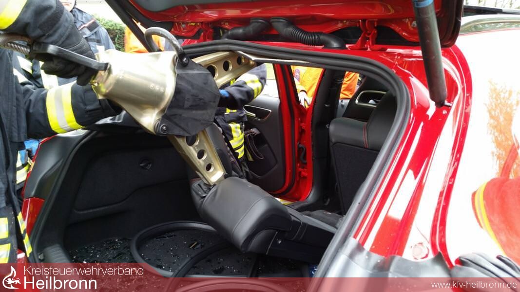 Dort stand für uns ein nagelneues Vorserienmodell eines großen deutschen Automobilherstellers bereit. Unter Leitung von André Weiss und seinem Trainerkollegen Jörg Heck haben wir das Fahrzeug zunächst erkundet und dann anhand von verschiedenen Übungsszenarien die dafür erforderlichen Schneide- und Spreiztechniken geübt. Die dabei gewonnenen Eindrücke waren sehr interessant und sind sicherlich hilfreich bei zukünftigen Einsätzen.
