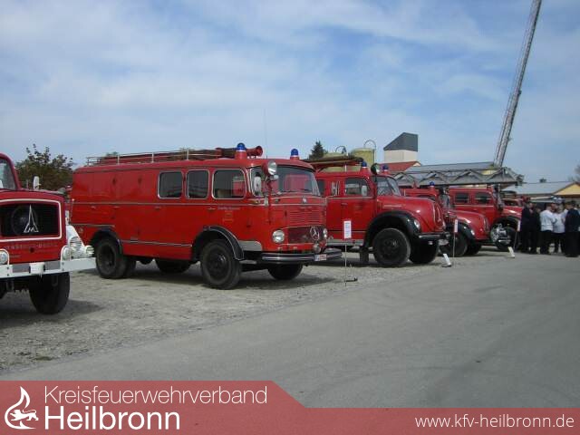 Zu sehen waren Fahrzeuge aus den Jahren 1920 (LF 20 Aalen) bis 1985 (Kommandowagen Opel Rekord, Privatbesitz). Wie immer hat unser Mercedes- Langhauber- Löschzug das Interesse der Besucher auf sich gezogen.