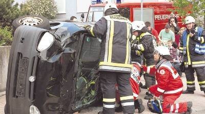 Finanzierung Wie der Vorsitzende des DRK-Ortsvereins, Dr. Henning Schock, mitteilte, rechnet der DRK-Rettungsdienst überwiegend über die Kostenträger, also die Krankenkassen, ab. Mannschaftswagen und von der Sanitätsstation genutzte Krankenwagen muss der Ortsverein selbst finanzieren. Im Einsatz sind jedoch sowohl Floriansjünger als auch Rotkreuzler ehrenamtlich. Und sie ergänzen sich, wenn es erforderlich ist. Dies demonstrierten sie jetzt auch wieder bei einer Unfallsimulation am Tag der offenen Tür.