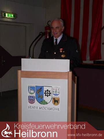 Bei seinem Vorgänger Emil Emert bedankte sich Thoma für seine Arbeit in den letzten fünf Jahren, in denen durch die Erarbeitung des Feuerwehrkonzeptes die Grundlagen für die zukünftige Ausrichtung der Feuerwehr gelegt wurden. Die Beschaffung des LF 10/6 für Züttlingen, des ELW 1, des MTW, des KdoW und des TLF für Möckmühl waren weitere Schwerpunkte seiner Arbeit. Durch den im Zusammenhang mit den Neuenanschaffungen durchgeführten Fahrzeugwechsel des LF 8 Züttlingen nach Korb, des bisherigen MTW Möckmühl nach Züttlingen und des TLF 16 Möckmühl nach Bittelbronn sind auch für alle Abteilungen fahrzeugmäßig sehr gute Bedingungen geschaffen worden. In seine Amtszeit fallen aber auch der Ausbau des Magazins in Züttlingen und der Umbau der Räume des DRK Möckmühl für die Möckmühler Jugendfeuerwehr.