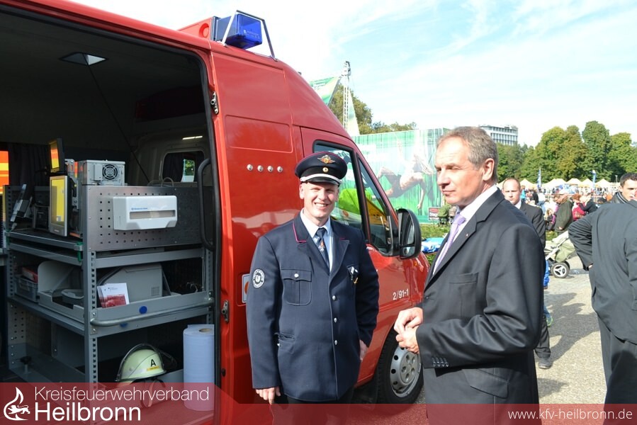 Bei seinem Rundgang über die Blaulichtmeile besuchte Innenminister Reinhold Gall auch unsere beiden Fahrzeuge für ein kurzes Gespräch. Neben vielen interessanten Gesprächen mit den Bürgern, waren einige Gespräche mit Feuerwehrkameraden aus anderen Feuerwehren dabei. Beim Besuch von Ausbildern der Landesfeuerwehrschule Baden-Württemberg wie Herrn Schmidt oder von Herrn Dr. Reiter als Leiter Katastrophenschutz und Großschadensabwehr waren sehr fachliche Gespräche darunter.