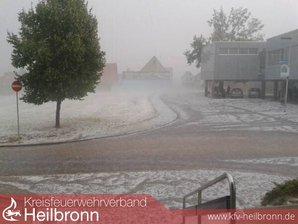 In Ilsfeld stehen in der Abenddämmerung Anwohner der Hauptstraße auf den Gehwegen, in Flip Flops und kurzen Hosen kehren sie die Schlammreste der Sturzflut zusammen, die hier noch bis 20 Uhr durch den Ort schwemmte, erzählt Ulrich Weninger. Durch den Hagel habe es kurzzeitig ausgesehen wie im Winter, berichtet er. Sogar zwei Schneepflüge seien im Einsatz gewesen, um die Zentimeterdicke Schicht von Hagelkörnern von den Straßen zu kehren.