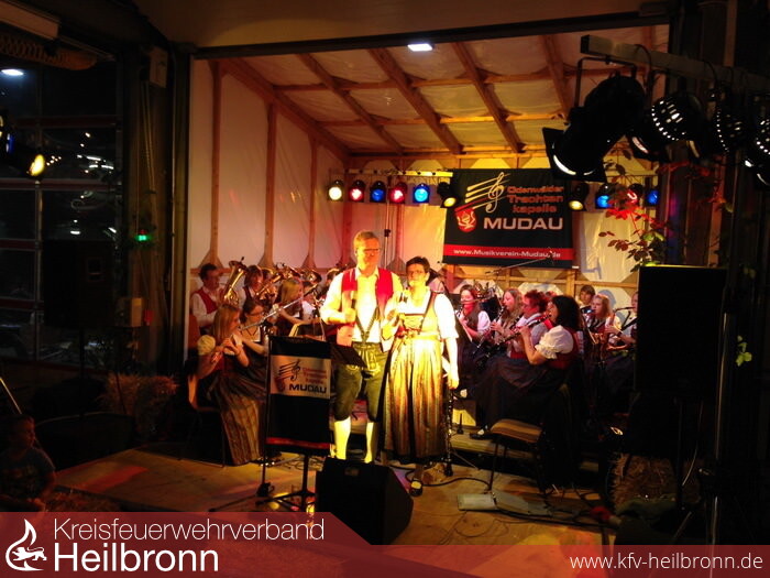 Bereits zur Tradition des Feuerwehrfestes ist der Laternenumzug für die Kinder durch die historische Möckmühler Altstadt geworden. Eskortiert von Feuerwehrfahrzeugen mit Blaulicht ging es für die Kinder mit ihren Fackeln auf den Weg ins Städtle. Zwischenzeitlich hatte die Odenwälder Trachtenkapelle aus Mudau ihren Auftritt vorbereitet und unterhielt anschließend die Festbesucher mi ihren musikalischen Beiträgen.
