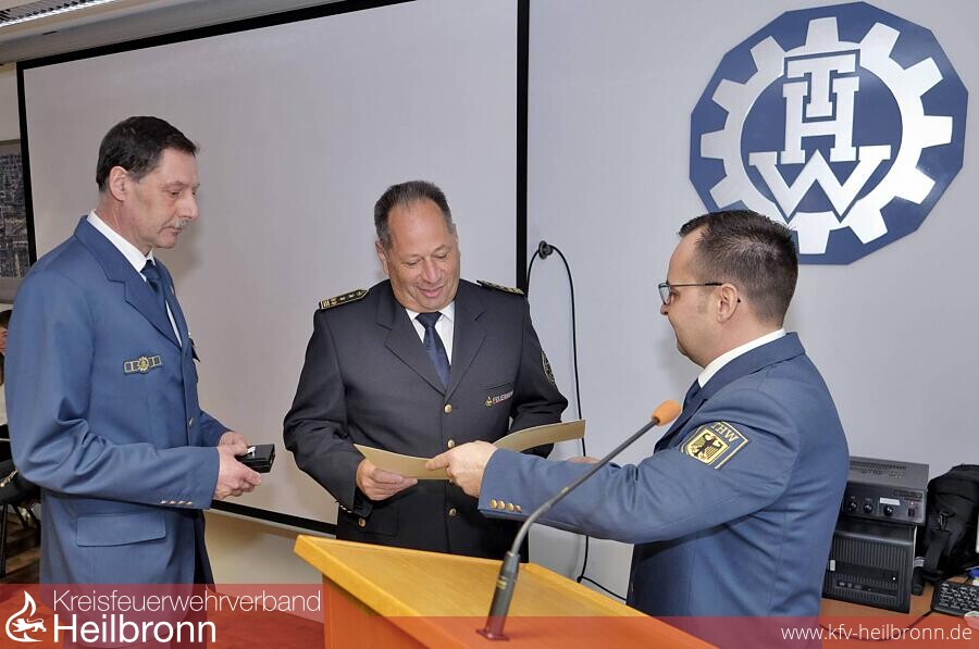 Außergewöhnliche Auszeichnung für den Leitenden Branddirektor Heilbronns. THW vergibt selten Ehrenzeichen an Externe. Besondere Zusammenarbeit und herausragendes Engagement wird damit gewürdigt.