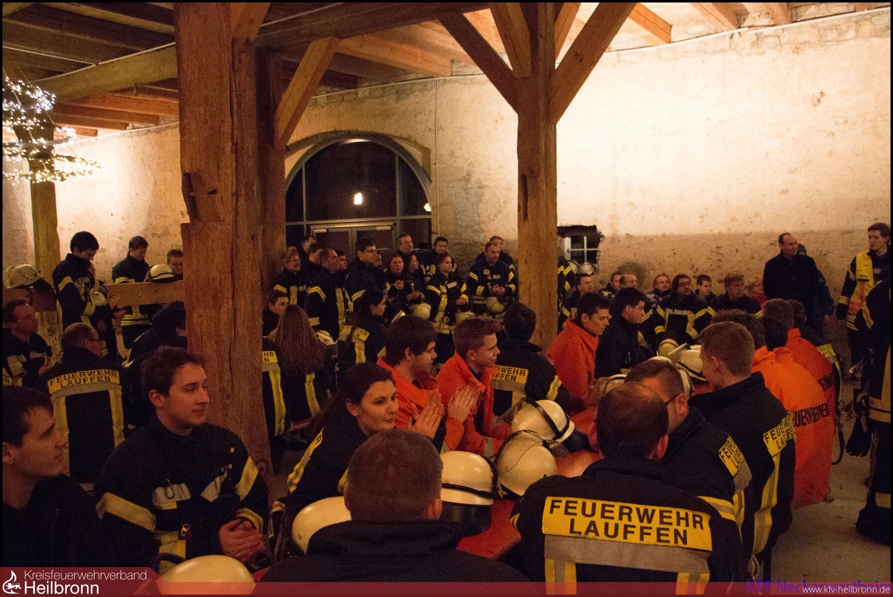 In der anschließenden Abschlussbesprechung in der Zehntscheuer bedankte sich Kommandant Weinert bei den rund 70 Feuerwehrleuten aus Neckarwestheim und Lauffen. Vor allem die jungen Feuerwehrangehörigen waren noch nie im Schlossgebäude. Bei der Übung konnten sie einen Eindruck über die verwinkelten Wege im historische Gebäude erhalten. Auch Bürgermeister Winkler, der die Übung beobachtete, bedankte sich bei den Einsatzkräften und lud im Anschluss zu einem kleinen Vesper ein.