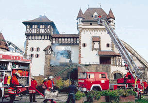 Rauch steigt aus dem Turm der Burg „Rauhe Klinge“ im Erlebnispark Tripsdrill. Menschen bleiben stehen, schauen, einige Kinder rufen: „Feuer!“ Die Badewannen der Großattraktionen bleiben stehen, bewegen sich keinen Meter mehr. Weder hinauf in den Turm, noch hinunter. „Bitte bleiben Sie ruhig und sitzen“, ertönt es aus den Lautsprechern. Ein paar Minuten später kommt Zoran Obadovic, Sicherheitsfachkraft in Tripsdrill, mit einem Wagen angefahren und gibt per Funk einen Notruf ab. Es ist Sonntag, 17.22 Uhr. Die Einsatzübung beginnt.