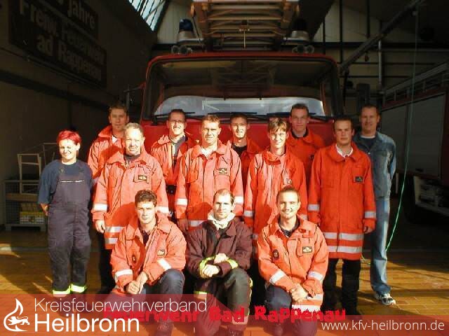 Bild 1: Die Teilnehmer von links nach rechts:Hinten: Martin Ehrling (Babstadt), Christoph Laufer (Grombach), Dieter Halmer (Bad Rappenau), Björn Hack (Grombach), Hartmut Scholz (Bonfeld)Mitte: Christiane Ott (Bad Rappenau), Willi Kühner (Babstadt), Thomas Bräcklein (Heinsheim), Markus Jochim (Grombach), Sebastian Müller (Grombach)Vorne: Die Ausbilder Frank Schrezenmaier, Thomas Wachno und Andreas Bödinger