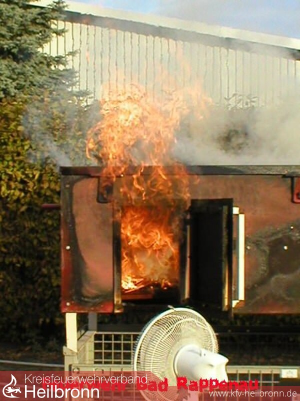 Wie ein Zimmerbrand sich bis hin zum Flashover entwickelt und wie man gefährliche Situationen erkennen und bekämpfen kann, konnten Atemschutzgeräteträger aus Bad Rappenau, Babstadt, Bonfeld, Grombach und Heinsheim an einem Demonstrationscontainer aus nächster Nähe sicher und ohne jede Gefahr beobachten.