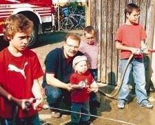 Bild: Früh übt sich, was ein echter Feuerwehrmann werden will: Der künftige Nachwuchs vertrieb sich die Zeit beim Zielspritzen. (Fotos: Edgar Herterich)