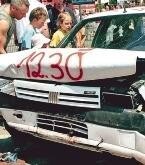 Bild: Eine Attraktion war der Crash eines Autos aus 15 Metern. (Foto: Edgar Herterich)