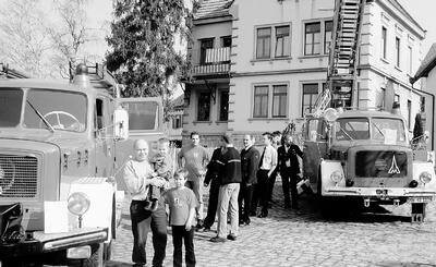 Im Mittelpunkt des Besucherinteresses standen zwei Oldtimer der Erstzulassung 1969 und 1972. Die in privatem Besitz befindlichen ehrwürdigen Fahrzeuge werden von der Jugendfeuerwehr Neuenstadt unter der Leitung von Andreas Küstner mit großem Engagement gepflegt und betreut. Zum einen handelt es sich hierbei um ein Löschgruppenfahrzeug mit der Bezeichnung „LF 16“. Das zweite Exemplar ist mit einer Drehleiter ausgestattet und trägt die Benennung „DL 30 h“.