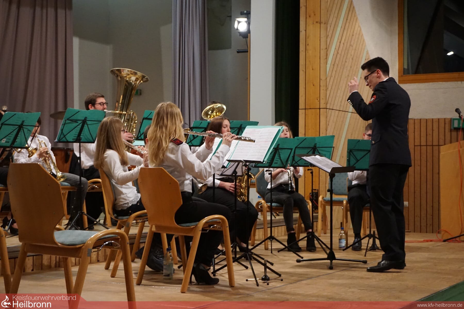 Am Samstag, 16. März 2019, hatte die Feuerwehrkapelle zu ihrem diesjährigen Frühjahrskonzert in die Kirchardter Festhalle geladen. Eröffnet wurde der Abend wie im Jahr zuvor von den Musikerinnen und Musikern der Jugendkapelle. Diese lieferten mit den beiden Popsongs „Counting Stars“ und „Budapest“ und vor allem dem gefühlvollen Walzer „2B Waltz“ einen erfolgreichen und souveränen Auftritt ab und zeigten, dass sie seit dem letzten Konzert so einiges dazu gelernt hatten. Sowohl Dirigent Marvin Frank als auch die Jugendlichen selbst konnten zu Recht stolz auf ihre Leistung sein.