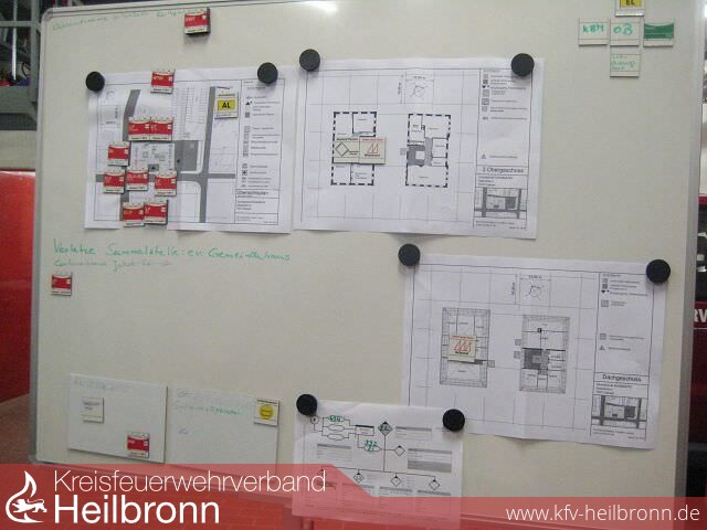 In zwei praxisorientierten Übungen wurden der Ablauf einer Großschadenslage sowie die Einsatzleitung bei einem Großeinsatz geübt. Die Übenden mussten dabei die Gesamteinsatzkoordination, die Kommunikation, die Organisation der Einsatzstelle sowie die Lagedarstellung vornehmen.