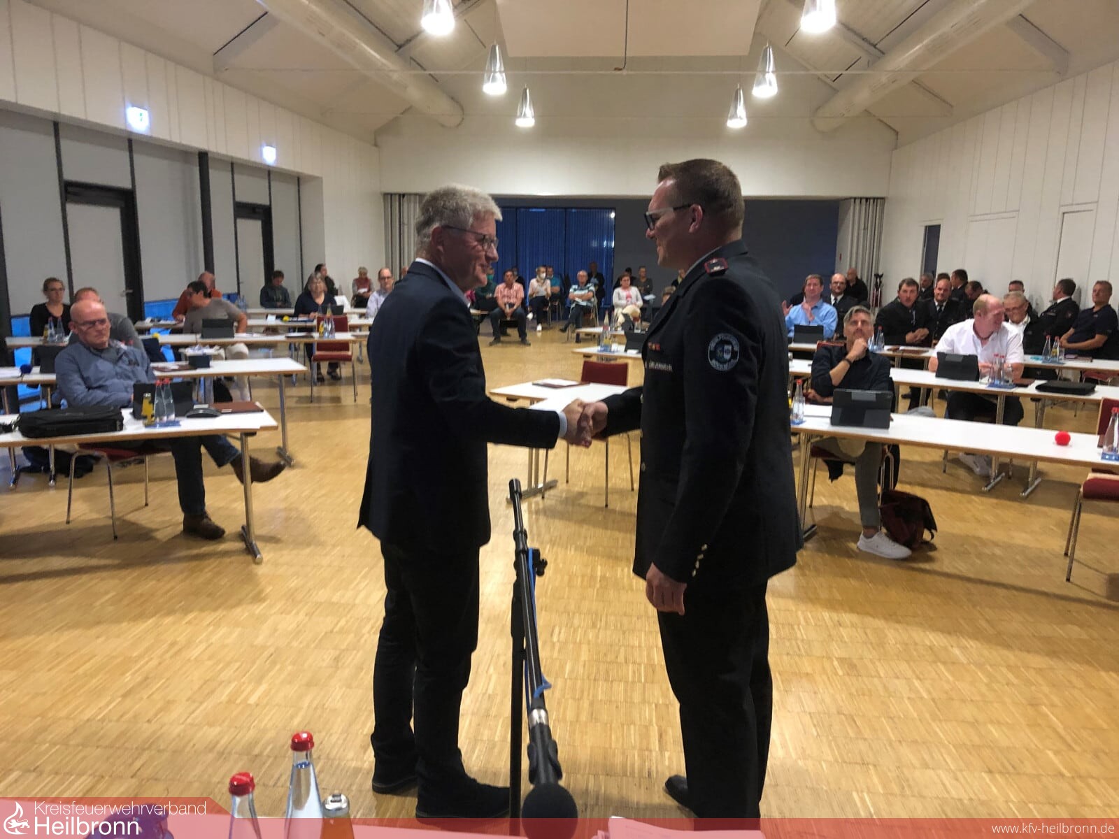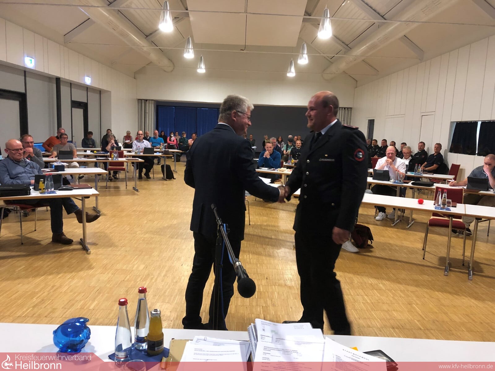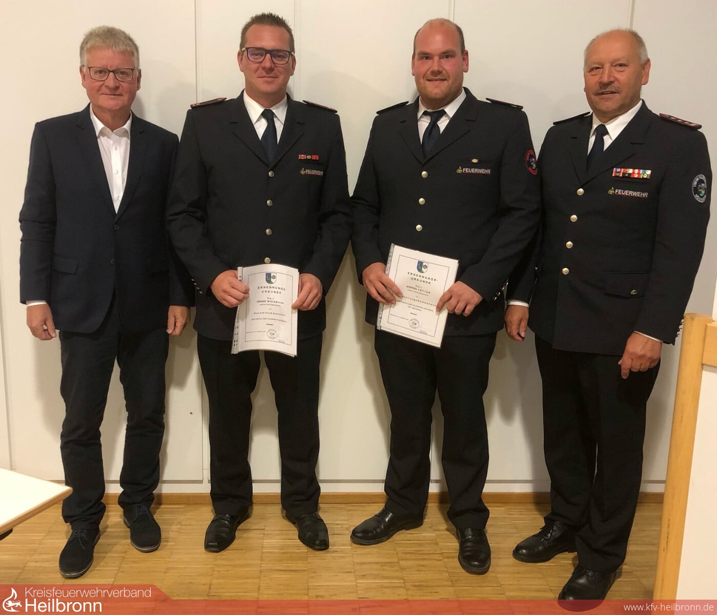 Uwe Thoma, der die Gesamtwehr seit 15 Jahren leitete, sowie sein Stellvertreter Hans-Jörg Stammer der diese Funktion seit 24 Jahren ausübt, stellten sich nicht mehr zur Wahl. Uwe Thoma: „In unserer Feuerwehr haben wir viele, sehr gut ausgebildete Nachwuchskräfte, die bereit sind Verantwortung zu übernehmen. Von der Altersstruktur her ist daher jetzt der richtige Zeitpunkt, die Verantwortung in jüngere Hände zu übergeben, zumal einige Investitionsentscheidungen anstehen, die für eine effiziente langfristige Arbeit auch von meinen Nachfolgern besser zu treffen sind.“ Diese Vorgehensweise war im Vorfeld feuerwehrintern besprochen und kommuniziert worden. Als Nachfolger von Uwe Thoma hatte sich Jürgen Weißmann bereit erklärt zu kandidieren, als Nachfolger von Hans-Jörg Stammer trat Steffen Vetter an.