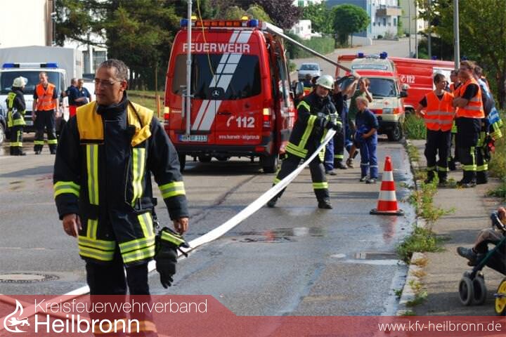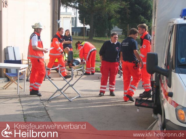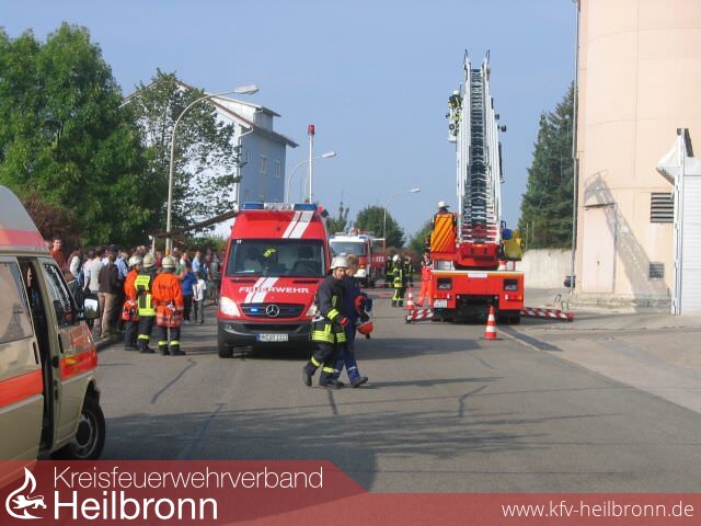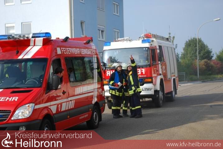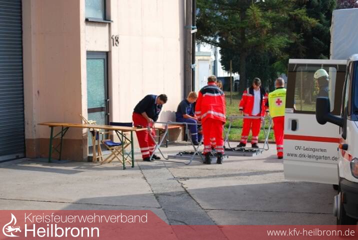 Ziel der Übung war es, an diesem Objekt wieder einmal eine Übung abzuhalten und dabei auch noch das interkommunale Zusammenspiel mit Feuerwehren aus der Nachbarschaft unter die Lupe zu nehmen. Dazu nahmen die Feuerwehr Lauffen a.N. mit ihrer Drehleiter und die Feuerwehr Schwaigern mit dem HLF 20/16 und SW 1000 an der Übung teil. Mit dabei war auch der DRK Ortsverein Leingarten.